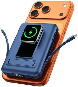 Features: 6-in-1 Magnetic Portable Charger,2 Inputs, 2 x Magnetic Wireless + 4 x Wired Charging,25W+QC4.0 Fast Charging Battery Pack Double-sided Wireless Magnetic Portable Charger for iPhone/iWatch/Airpods, Wireless Power Bank with Apple Watch Charger, 25W PD Fast Charging Mag-Safe Battery Pack with 6 Outputs and LCD Display, Fast Charging Wireless Phone Charger,Lightweight Travel Charger ?