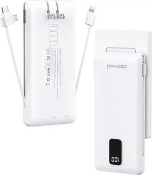 Charmast Portable Charger with Built-in Cables & Wall Plug, 10000mAh Portable Power Bank, External Battery Pack Travel Essentials Compatible with iPhone 16/15/14/13, Samsung, iPad etc