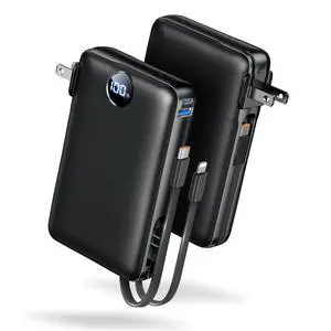 Power Bank, 50000 mAh Portable Charger with Built in Cable & Wall Plug, 22.5W Fast Charging, Travel Essential Battery Pack with LED Display for iPhone 17/16/15/14 Series, Galaxy, iPad Black