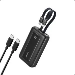 Power Bank, 20,000mAh Travel Essential Portable Charger with Built-in USB-C Cable, 3-Port 87W Max Fast Charging Battery Pack, for MacBook, iPhone 16/15 Series, Samsung, Switch, and More