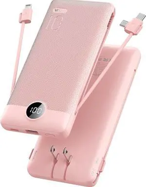 2026 Portable Charger Power Bank, PD 20W Super Fast Charging 10000mAh Travel Essentials Battery Pack, 5 Outputs 2 Inputs Slim Charging Bank Built-in Cables Cords Wires for iPhone, Samsung, Android