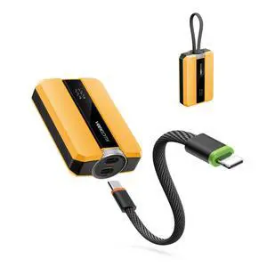 JAYSUING PD 30W Super Fast Charging Portable Charger 10000mAh, Small Power Bank with Detachable USB C Dual Ports Built-in Cord, Compact Travel Battery Pack Compatible with iPhone/Samsung/MacBook/iPad