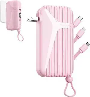 JAENFONG Portable Charger Power Bank 5000mAh Small Battery Pack with Built-in Foldable AC Wall Plug and Cables Mini Battery Charger Compatible with iPhone 16 15 14 13 12 Google iPad etc