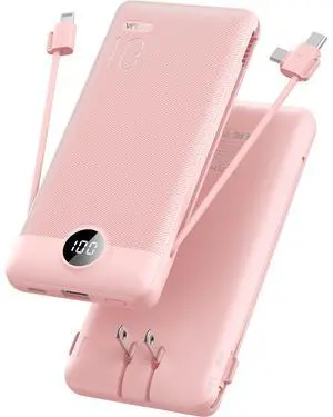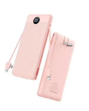 JAYSUING Portable Charger Power Bank with Wall Plug, 10000mAh Portable Charger with Built in Cables, PD 20W Fast Charging Portable Charger with Cords External Charger Travel Accessories-Pink(1 Pack)