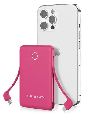 JAYSUING Nano Portable Charger for iPhone, with Built-in MFi Certified Lightning Connector, Power Bank 5,000mAh 12W, Compatible with iPhone 14/13/12 Series (Pink)