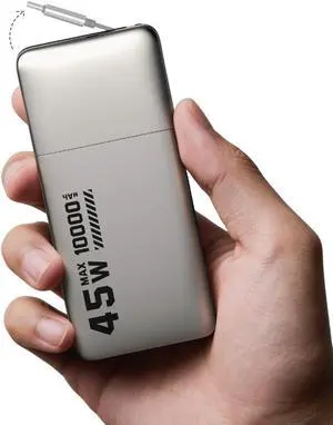 MFish 45W Power Bank, Portable Charger Built-in Retractable Cables with LED Display, 10000mAh 2 USB-C Fast Charging Powerbank for iPhone 17/16/15 Series, MacBook, and More