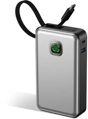 20000mAh Portable Charger with Built in Cables, 22.5W Travel Power Bank Fast Charging, USB C Cell Phone Battery Pack for iPhone 16/15/14/13/12/11 Series, iPad, Samsung, Android, Tablet
