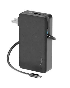 RetractaCharger 10000mAh Portable Charger Power Bank with 28-Inch Retractable USB-C Cable | Premium Fabric | Built-in Wall Plug | 30W PD Fast Charging | USB-C/A Ports | Digital Display