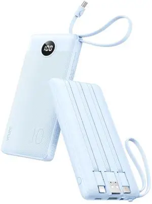 VEEKTOMX Portable Charger with Built in Cables 10000mAh, Power Bank for iPhone with AC Wall Plug, Fast Charging USB C Slim Battery Pack with LED Display Compatible with iPhone 17/16/15/14, Samsung