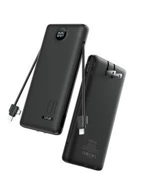 VRURC Portable Charger Power Bank - 10000mAh Fast Charging 22.5W with Wall Plug Slim Portable Charger Built in Cables USB C Portable Phone Charger Travel Accessories -Black(1 Pack)