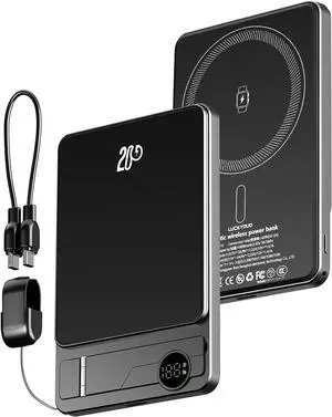 LUCKYDUO 3 in 1 Magnetic Wireless Power Bank, Slim Magnetic Portable Charger with Foldable Stand & LED Display, PD 20W USB C Cable Magnetic Battery Pack for iPhone 17/Air/Pro/16/15/14/13 (10000mAh)