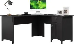 Bush Furniture L Shaped Desk with Storage for Home Office, Modern Farmhouse Corner Table with Drawers and Cabinets, Salinas Collection, Vintage Black