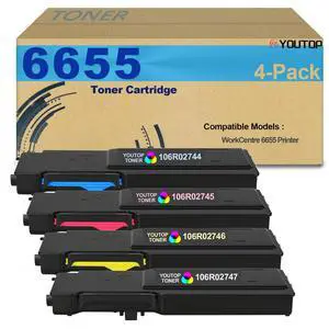 YOUTOP 4PK 6655 Toner Cartridge High Yield 106R02744 106R02745 106R02746 106R02747 Toner Cartridge Replacement for Xerox WorkCentre 6655 Printer