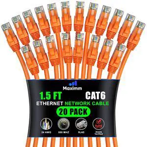 Maximm Cat 6 Ethernet Cable 1.5 ft (20-Pack) - High-Speed LAN Cable, Internet Cable, Patch Cable, and Network Cable - UTP, 10Gbps, 550MHz Ethernet Cord - Orange