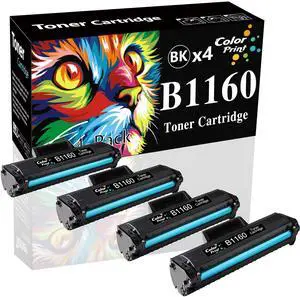 4-Pack ColorPrint Compatible Toner Cartridge Replacement for Dell 1160 B1160W 1160 331-7335 YK1PM HF44N HF442 Work with B1160 B1163w B1165nfw Printer (Black)