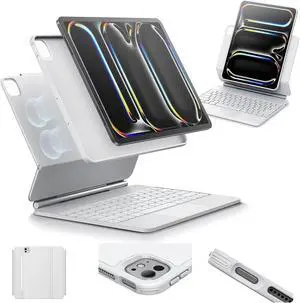 ESR iPad Pro 13 Inch Case with Keyboard (M5/M4, 2025/2024), iPad Pro 13 Keyboard Case with Easy-Set Magnetic Stand, Portrait/Raised Modes for iPad Pro 13, Removable, Rebound 360 Series,White