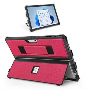 Case for 12.3" Microsoft Surface Pro 7+/7/6/5/4 Protective Rugged Cover Case, with Surface Pen Holder and Hand Strap, Compatible with Surface Pro Type Cover Keyboard (Red)