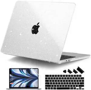 DONGKE Compatible with MacBook Air 13.6 inch Case M4 M3 M2 2025 2024 2023 2022 A3240 A3113 A2681, Glitter Bling Plastic Hard Shell & Keyboard Cover for MacBook Air M4 13 inch Case, Sparkly Clear