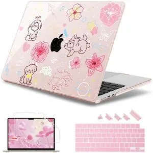 May Chen [2025 New Pattern] for MacBook Air 13.6 inch Case M2 M3 M4 Chip Model: A2681 A3113 A3240, 2022-2025 Release, Plastic Hard Shell Cover with Screen Protector & Keyboard Skin - Cute Puppy Bows