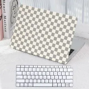 Compatible with MacBook Air 13 inch Case 2025-2022 M4 M3 M2 A3240 A3113 A2681, Classy Luxury Textured Checker Checkerboard Grid Pattern PU Leather Hard Shell & Keyboard Cover, Beige Checkered