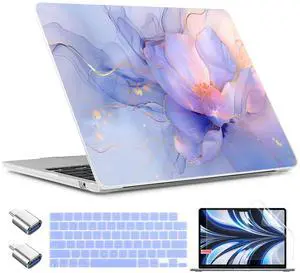 TWOLSKOO for MacBook Air 13 inch Case M4 A3240 M3 A3113 M2 A2681 2025 2024 2022 Plastic Hard Shell, Keyboard Cover, Type C Adapter, Screen Protector for MacBook Air 13.6 inch, Blue Marble