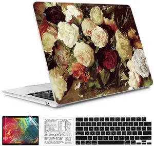 QCzyc Flower Compatible with MacBook Air 13.6 inch Case 2022-2025 Release A2681 M2 A3113 M3 A3240 M4 Chip Plastic Laptop Shell w/Mac OS Keyboard Sticker & Keyboard Cover (Rose)