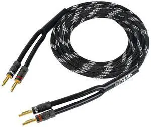 Nakamichi Excel Series 24k Gold Plated Banana Plugs with Speaker Cable Wire 99.9% Oxygen-Free Copper (OFC) Heavy Duty Braided for Amplifier Hi-Fi Home Theatre - Black (14AWG / 3 feet / 0.9m)
