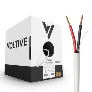 Voltive 14/2 Speaker Wire, Plenum CL3P, White, 500ft - 14AWG, 2 Conductors, Stranded Oxygen-Free Copper, UL Listed - V-1215-2