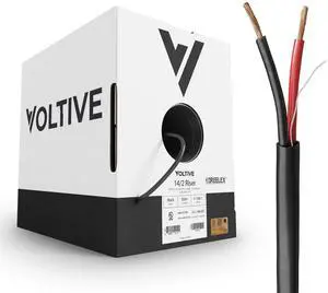 Voltive 14/2 Speaker Wire, Riser CL3R, Black, 500ft - 14AWG, 2 Conductors, Stranded Oxygen-Free Copper, UL Listed - V-1268-1