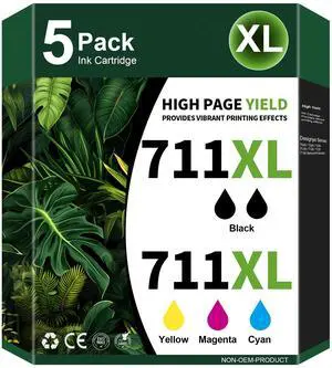 5-Pack 711XL Ink Cartridges High Yield Compatible Replacement for HP 711 ink Cartridges 711XL Work for HP Designjet T120 T100 T520 T125 T130 T525 T530 Printer (2 Black, 1 Cyan, 1 Magenta, 1 Yellow)