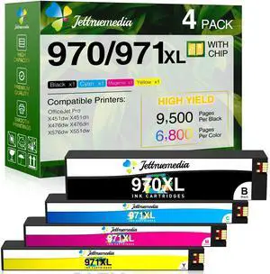 4-Pack 970XL 971XL PageWide Cartridge High Yield Compatible with HP 970XL 971XL Ink Cartridges for HP Printer OfficeJet Pro X476dn X451dw X451dn X476dw X576dw X551dw (970XL Black, 971XL C/M/Y)