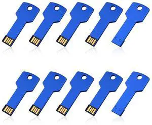 RAOYI 10 Pack 16GB USB Flash Drive USB 2.0 Metal Key Shape Memory Stick Thumb Drive Pen Drive-Blue