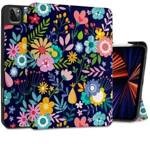 May Chen Case for iPad Pro 11 inch (4th, 3rd, 2nd & 1st Gen) 2022 2021 2020 2018, Trifold Stand + Pencil Holder + Auto Wake/Sleep + Soft TPU Protective Stand Back Cover, Trendy Flower