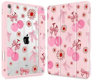 Lepeoac Case for iPad 11 inch A16 2025 Generation 11th / iPad 10.9 inch 2022 10th Gen, Buit in Pencil Holder with Shockproof Cover Clear Transparent Back Shell Auto Wake/Sleep, Cherry Bow P705