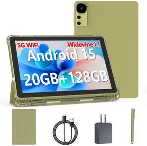 Android 15 Tablet 10 inch Tablets, 20GB RAM 128GB ROM 2TB Expand, 2.0Ghz CPU Quad-Core Processor Tablet PC with Case and Stylus, 5G WiFi6, BT5.0, 6000mAh Battery, Dual Camera, Widevine L1, GMS, Yellow