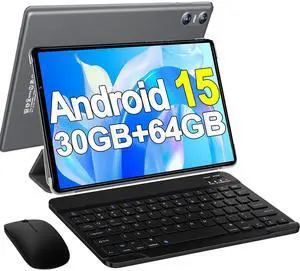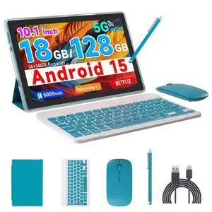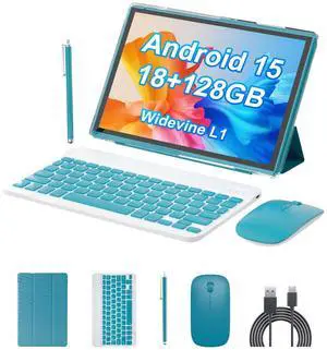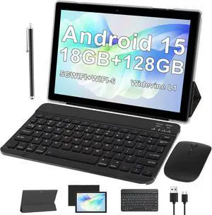 10 inch Tablet with Keyboard Android 15(NOT GO) Tablets 2 in 1 Tablet 18GB RAM 128GB Supports 2TB Expansion Tablets include Case Mouse Stylus 6000mAh Battery 2MP+8MP Dual Camera 5G WiFi6 10.1" Tableta