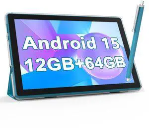 NOVOJOY 10 Inch Android tableta with Case and Stylus Tablet with USB Port Android 15 Tablet 2.0GHZ 2MP+8MP Dual Camera 6000mAh 12GB RAM(4GB+8GB Expansion) +64GB ROM 5Gwifi6 Tablets (Navy Blue)