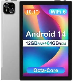 ATMPC Tablet 10 inch Android 14 Tablet with Octa Core Processor 12GB RAM 128GB ROM 1TB Expandable 1280x800 IPS Touchscreen, 6000mAh Battery, WiFi 6, BT 5.4, Dual Camera (Sliver)