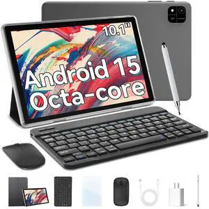 2026 Android 15 Tablet with Keyboard, 26GB RAM, 256GB ROM(2TB Expand), 10 inch tablet with Octa-core, Gemini AI, 8000mAh, 2.4G/5G WiFi, BT 5.0, 5MP+13MP, Tablets with Case, Mouse, Stylus (Green Case)
