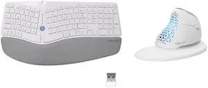 DELUX Wireless Ergonomic Keyboard Mouse Combo, Split Ergo Keyboard GM901D-White and Large Vertical Mouse M618XSD-White