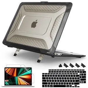 Mektron Heavy Duty Casefor MacBook Air 13 inch 2020 2019 2018 Release Model A2337 M1 A2179 A1932, Shockproof Durable Protective Hard Shell with Fold KickstandBlack