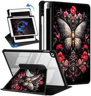 Casetego for iPad 6th/5th Generation 9.7 Inch Case,with Pencil Holder,360Rotating Adjustable Stand Protective Cover,Black