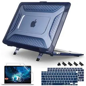 Mektron Heavy Duty Casefor MacBook Air 13 inch 2020 2019 2018 Release Model A2337 M1 A2179 A1932, Shockproof Durable Protective Hard Shell with Fold KickstandNavy Blue