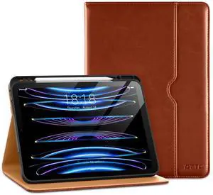 DTTO for iPad Pro 12.9 6th / 5th / 4th / 3rd Generation Case 2022/2021/2020/2018, Premium Leather Folio Stand Cover with Built-in Apple Pencil Holder -Auto Wake/Sleep and Multi Viewing Angles,Brown