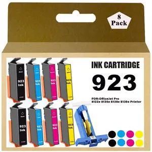923 Ink Cartridges Combo Pack Replacement for HP 923 Ink Cartridges Use for 8122e OfficeJet Pro 8135e 8138e 8139e Printer Ink Without Chip 8 Pack 2*Black 2*Cyan 2*Magenta 2*Yellow