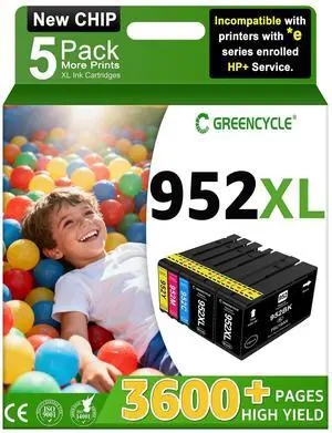 Green Toner Supply 952XL Black Cyan Magenta Yellow Ink Cartridge (5 Pack, Color Set) Compatible for HP OfficeJet Pro 8702 7720 7740 8710 8715 8720 8210 8703 All-in-One Printer