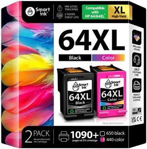 Smart Ink Remanufactured Ink Cartridge Replacement for HP 64 XL 64XL (Black & Color Combo Pack) use with Envy Photo 7855 7155 7858 6255 7800 6222 7120 6252 7164 Tango X Printers