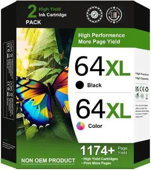 Remanufactured for 64XL Ink Cartridge Combo Pack Replacement for HP 64 Ink Cartridges Black and Color Combo Pack Fits for HP Envy Photo 7855 7858 7155 7120 7800 6252 6255 7158 7100 Tango Printer