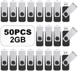 TOPESEL 50PCS 2GB Bulk USB 2.0 Flash Drive Swivel Memory Stick Thumb Drives Pen Drive (2gig, 50 Pack, Black)