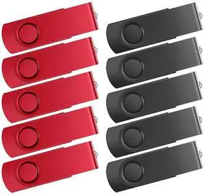 USB Flash Drive 2GB 10 Pack FEWINA USB 2.0 Flash Drives Bulk 2 GB Thumb Drive Swivel Memory Stick Jump Drive Pen Drive for Storage and BackupBlack and Red,10PCS 2GB